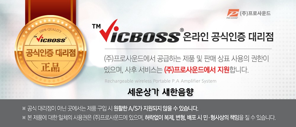 - 제조국 : 대한민국 - 제조사 : (주)프로사운드 - 서비스 : 031-322-6123 - 브랜드 : 빅보스, 진보스 ( VICBOSS, GINBOSS ) - 품 명 : 충전식 2채널 무선 마이크 - 모델명 : P-9200 - 제품 구입 및 문의 : 세운상가 새한음향 / 02-2267-9259