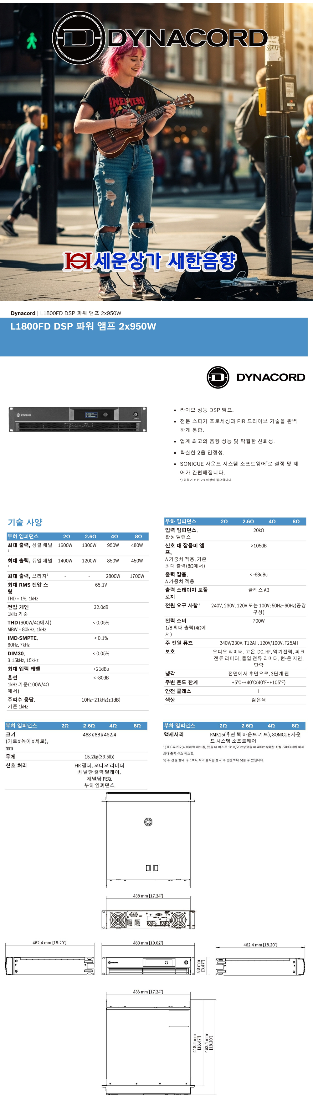 * 제품의 특징 및 사양 ( 다이나코드 프로페셔널 DSP 파워앰프 L1800FD-EU )