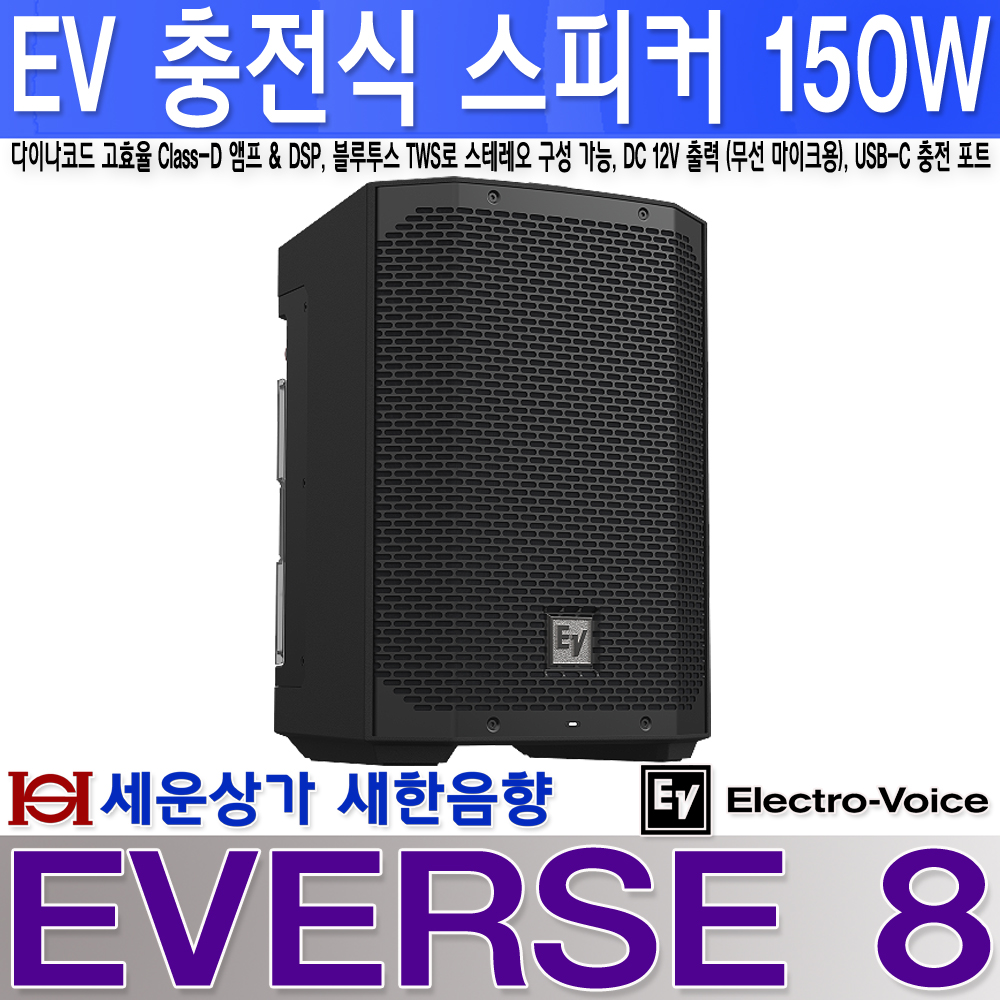 EVERSE8 이브이 EV 충전식 파워드 스피커 150W, 앰프 내장형, 공연 연주 버스킹 등