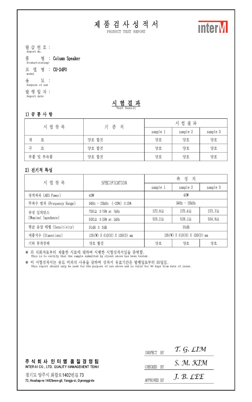 CU-24FO 인터엠 40W 실내용 컬럼 스피커, 알루미늄 재질, 난연 그릴망 사용, IP34 방수 등급 / CU24FO 본문
