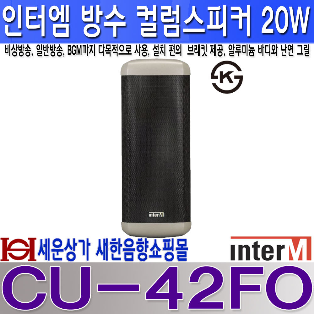 CU-42FO, CU-42FOU, 인터엠 방수 컬럼 스피커 20W, IP34 등급, KS 인증, 브라켓 포함, 알루미늄 재질, 난연 그릴 사용 / CU42FO 본문