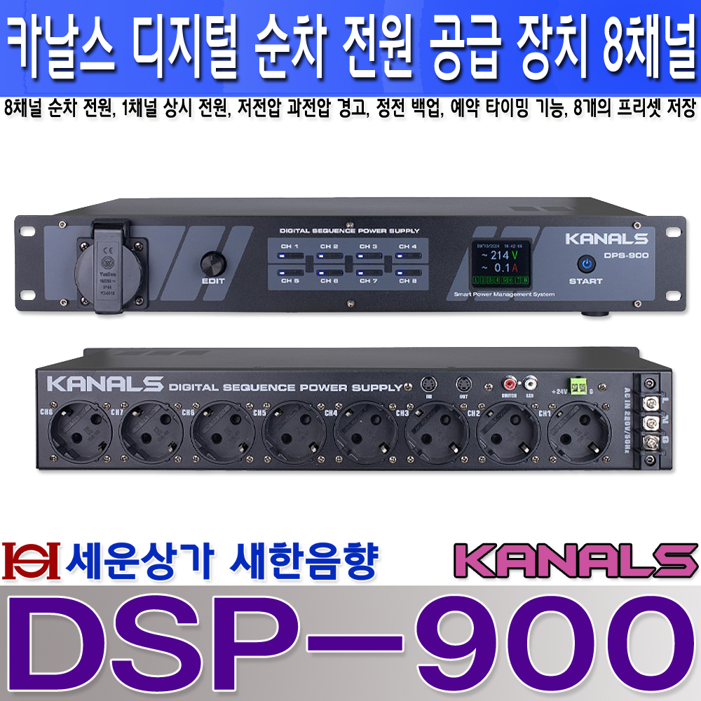DSP-900 카날스 디지털 순차 전원 공급기 8채널, 예약 기능, 정전 보상 : 새한음향 세운상가