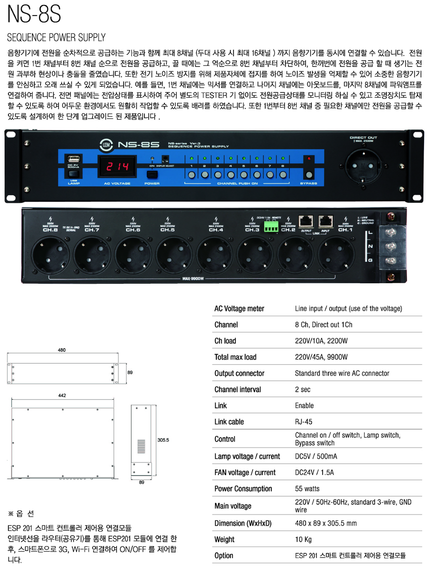 NS-8S 임산업 8채널 순차 전원 공급기,전기 과부하 방지, 전기 노이즈 방지 NS8S : 새한음향 세운상