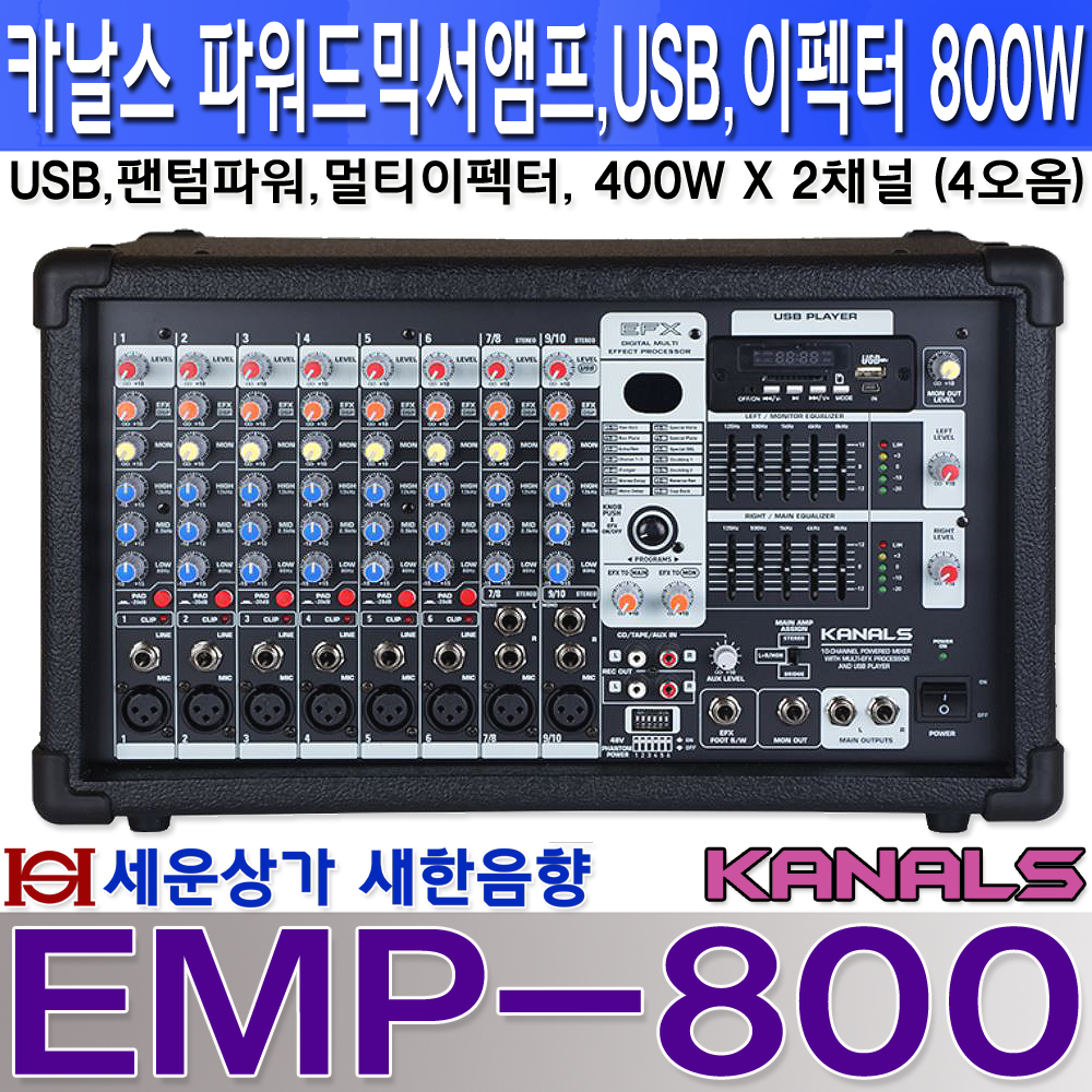 EMP-800 카날스 파워드 믹서 앰프 800W, USB, 이펙터, 팬텀 파워 : 새한음향 세운상가