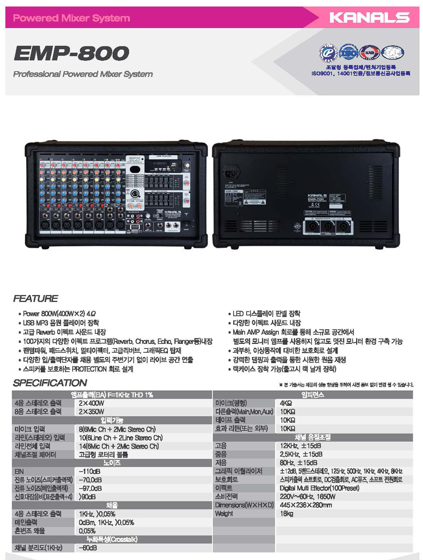 - 품 명 : 카날스 앰프 내장형 파워드 믹서 앰프 / EMP800