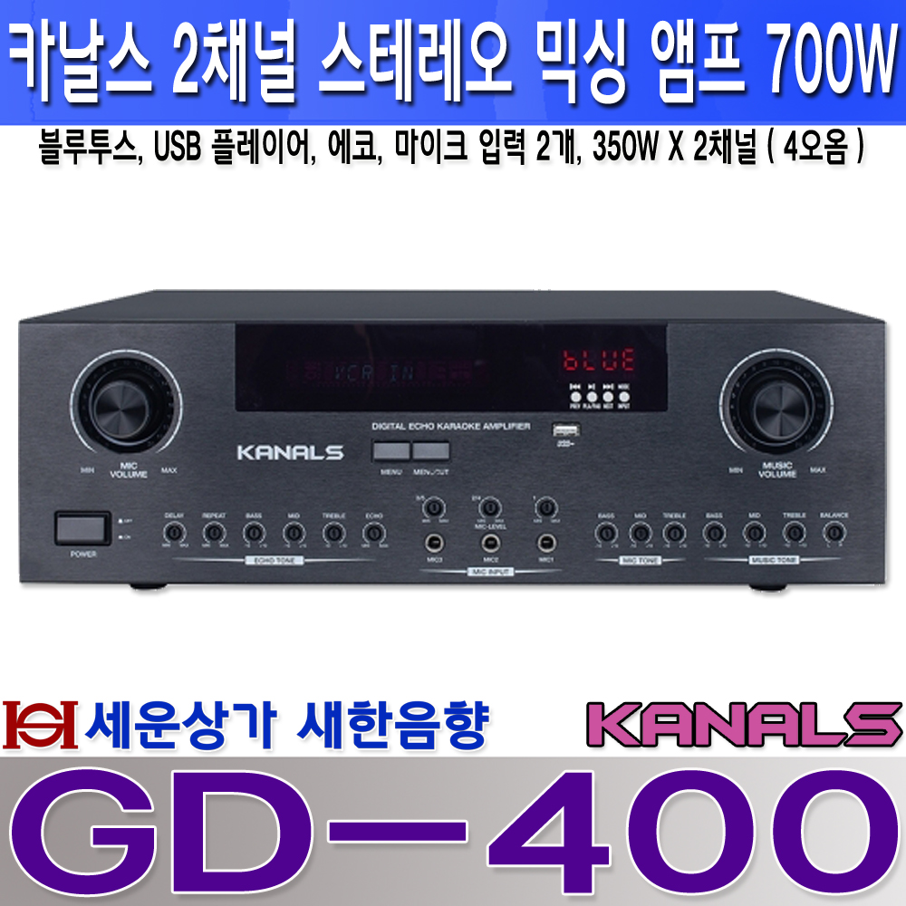 GD-400 카날스 2채널 파워 믹싱 앰프 700W, 블루투스, USB, 에코,노래방엠프 : 새한음향 세운상가