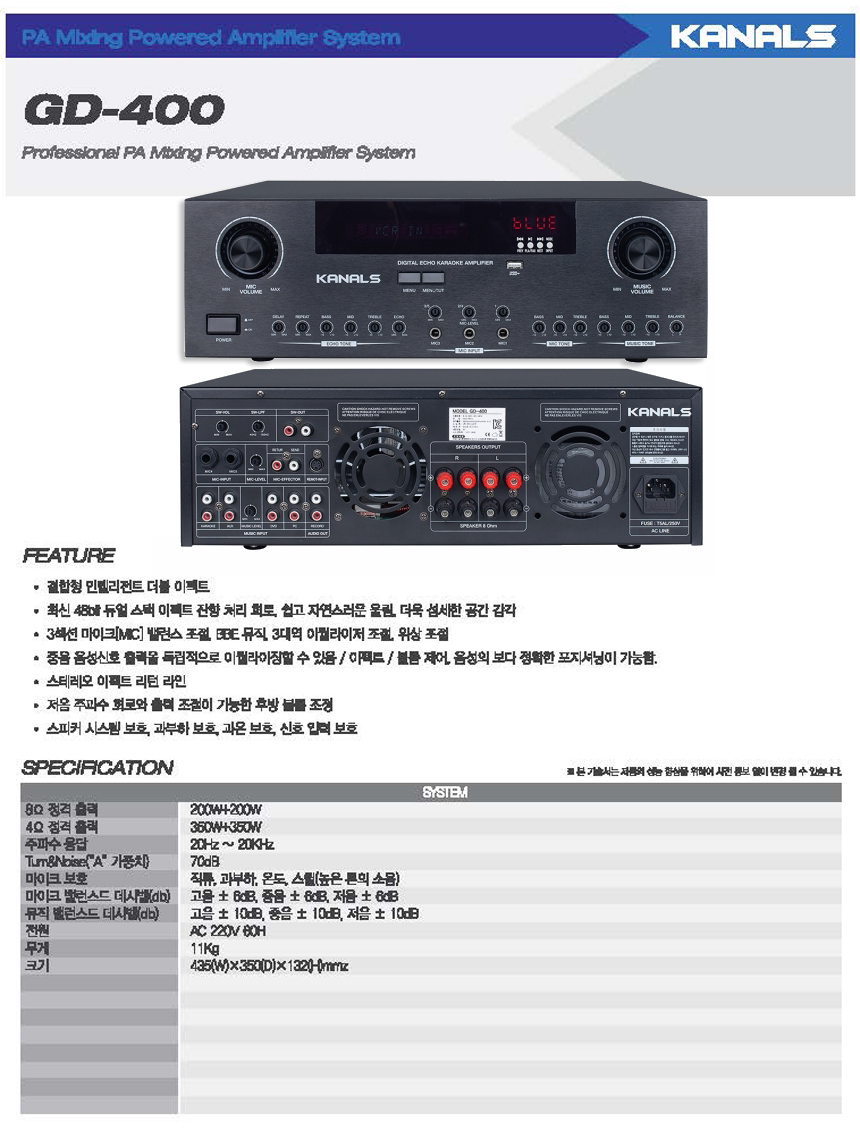 - 품 명 : 카날스 2채널 디지털 앰프 GD-400 / 노래방 앰프