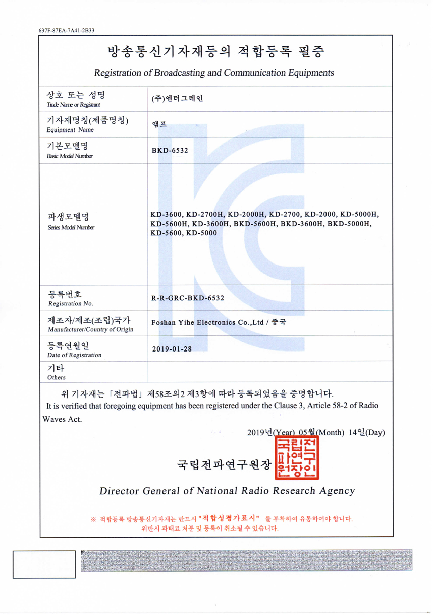 - 방송 통신 기자재 인증 번호 : R-R-GRC-BKD-6532