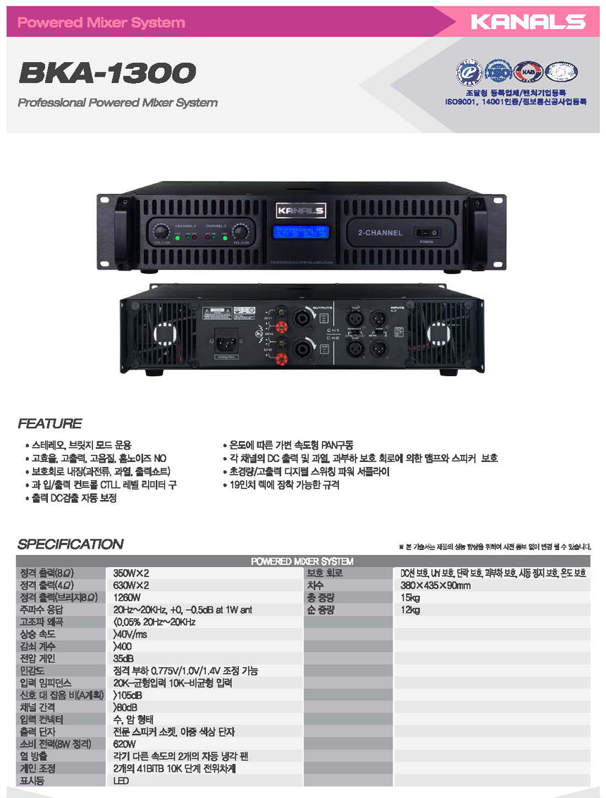 - 모델명 : BKA-1300 파워 앰프